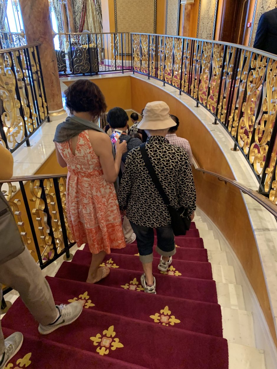 拉一把椅子,趕緊拍下「把手」有金的金交椅!与咱們大清時候的「流金椅」異曲同工!大清王朝的椅子雕工細緻,他們這個因金而貴,線條如明式,其實現代人比較能接受!餐具碗碟,銀飾刀义都是考究的!