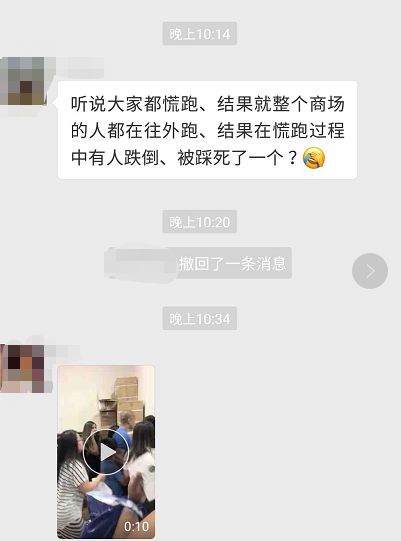 还有人在群里添油加醋哦的说因为大家都往外跑,结果踩死一个。
